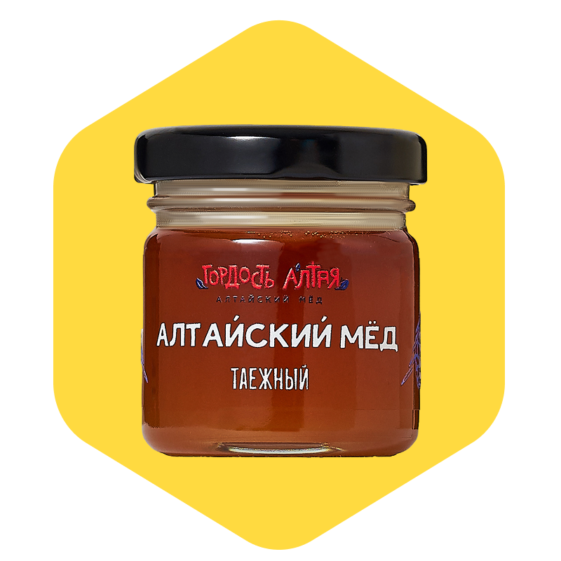 Таёжный мёд из Алтайского края — насыщенный натуральный мёд, собранный с дикорастущих растений в глубинных лесных массивах. В состав входят нектары с таких медоносов, как дягиль, медвежья дудка, кипрей, черника, смородина, земляника, зверобой, шалфей и другие дикорастущие травы. Местность сбора — отдалённые участки таёжной зоны, без промышленных объектов. Цвет варьируется от янтарного до темно-коричневого, вкус — глубокий, насыщенный, с травяными и древесными нотами. Консистенция плотная, мёд хорошо кристаллизуется, что говорит о его подлинности и высоком качестве.